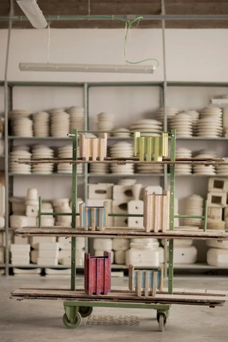 Bitossi’s Merlate vase is a ceramic masterpiece designed by Patricia Urquiola. Urquiola’s diverse background in architecture and design is evident in the essence of the Merlate collection: the sculptural shape of the vases, in its robust delicacy, evokes buildings reaching high toward the sky. The Merlate vases are unique works of art with a beautifully angular design and charming color combinations that brighten up any interior, whether filled with flowers or standing empty.
