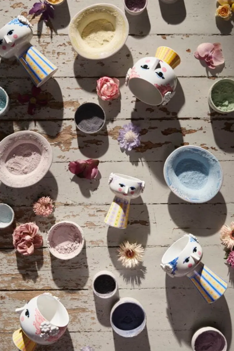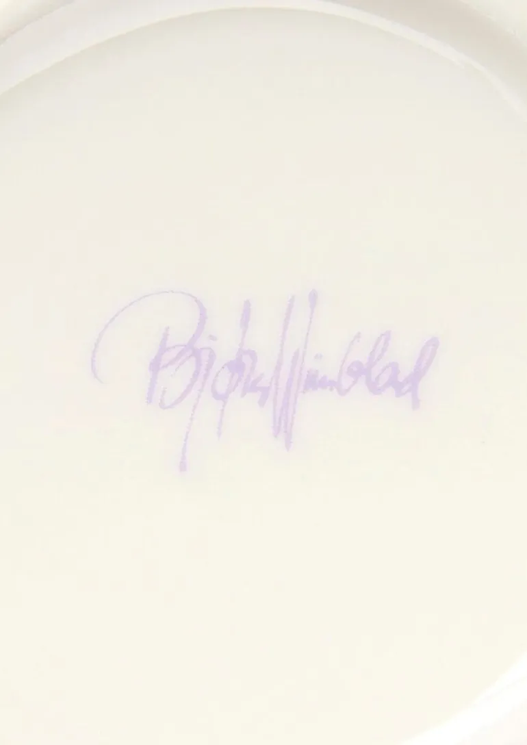 Beloved Danish artist Bjørn Wiinblad, renowned for his magical style and exquisite ornaments, created many feminine characters throughout his career, and perhaps the most famous of them all is Eva. The items of the Eva collection perfectly embody Wiinblad’s exuberant joie de vivre and his appreciation for ornamental beauty, spreading these around wherever they are placed. Eva’s almond-shaped eyes, pointy nose, rosy cheeks and gentle smile are original Bjørn Wiinblad designs, and the ornamental patterns of the dress are interpretations of the artist’s archived illustrations.