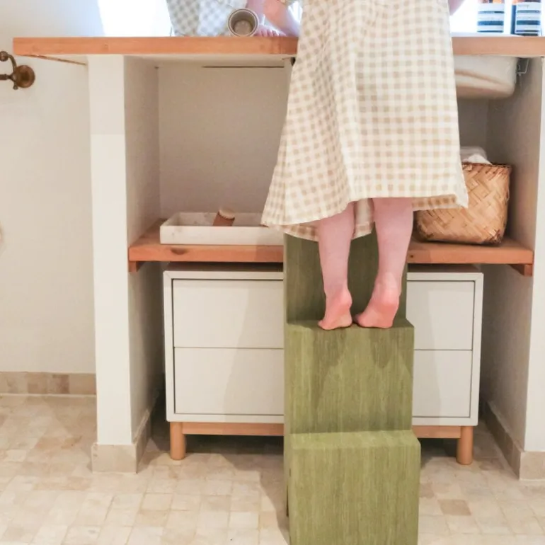 Crocodile by bObles allows kids to develop their balance and gross motor skills in a fun and exciting way: they can climb up the steps on Crocodile’s back or turn it around and crawl up or slide down its flat belly. Two Crocodiles can be used to make a kids’ bench or table or even stilts! When playtime is over, Crocodile doubles as a step stool.
