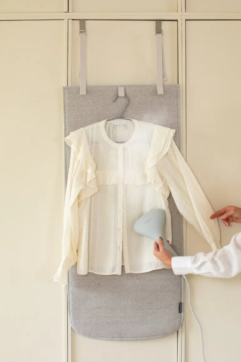 Brabantia’s door steam blanket is the perfect accessory for refreshing your garments with steam. Designed to hang on regular doors or cabinet doors, this cotton-covered steam blanket provides a sturdy, padded surface for steaming all types of clothing. Thanks to the metal hooks and height-adjustable straps, it’s easy to position the blanket at the ideal level for you, and after use, it can be rolled up and stored away in a compact space. The door steam blanket features a protective layer that prevents heat and moisture from reaching the surface of the door.