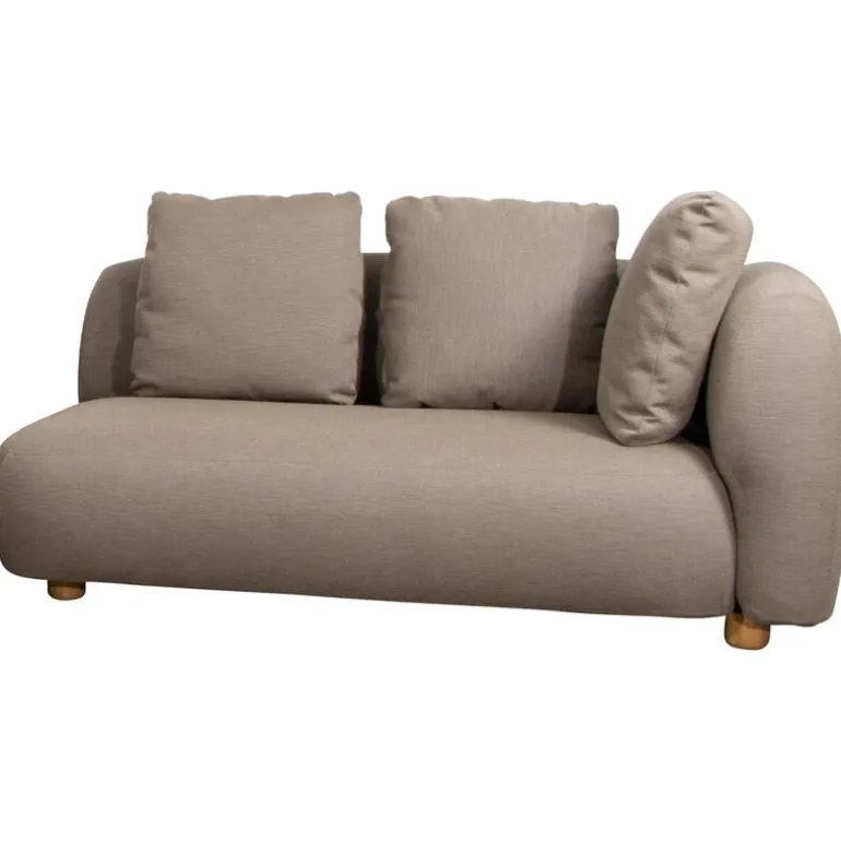 Cane-line’s Capture sofa provides weatherproof comfort and unparalleled versatility for both smaller and larger outdoor areas. The two-seater sofa is fully upholstered with Cane-line’s own AirTouch fabric, whose QuickDry & Airflow system ensures that the fabric dries in just one hour after a downpour. The frame of the sofa is made of aluminum and the legs from teak. Featuring an armrest on the left-hand side, this Capture sofa comes with three removable, machine-washable cushions.