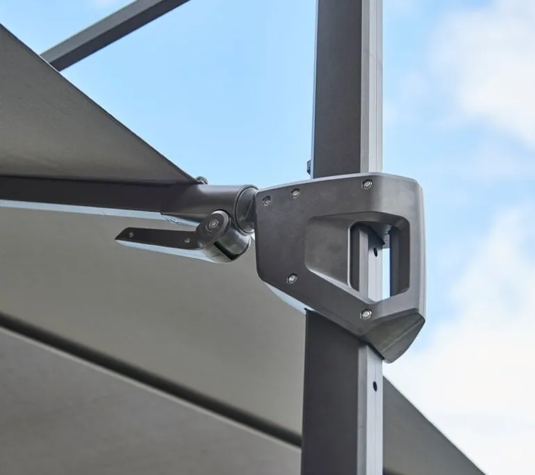 Cane-line’s Hyde Luxe parasol is the perfect way to create a shady oasis in any outdoor space, whether it’s a patio, garden or pool area. The Hyde Luxe parasol combines a high-quality aluminum pole and crank lift with a durable polyester fabric shade that has been treated resistant to UV rays. The tilt function allows you to adjust the angle of the parasol, so you can easily create a shaded spot that suits your needs, and the heavyweight concrete base makes the parasol extremely sturdy and safe to use. Please note, however, that during heavy wind conditions, it’s always best to keep the parasol closed.