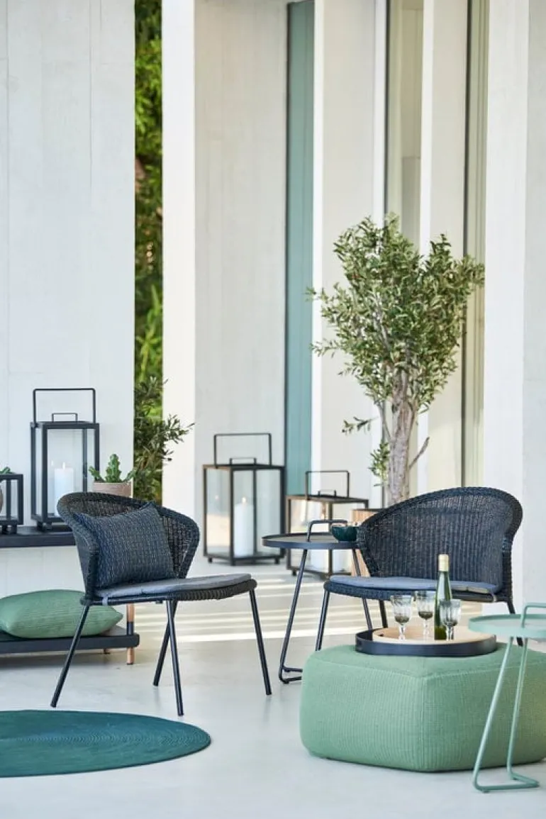 This seat cushion set is designed for Cane-line’s Lean outdoor chair. The cushions are made of Cane-line’s own Cane-line Natté polyethylene fabric, manufactured by Sunbrella, that is specially created for outdoor use and varying weather conditions. The fabric is dyed with the Solution Dye technique, in which the raw material itself is dyed rather than the finished fabric. This results in an even, durable color that requires far less chemicals than traditional dyeing techniques.