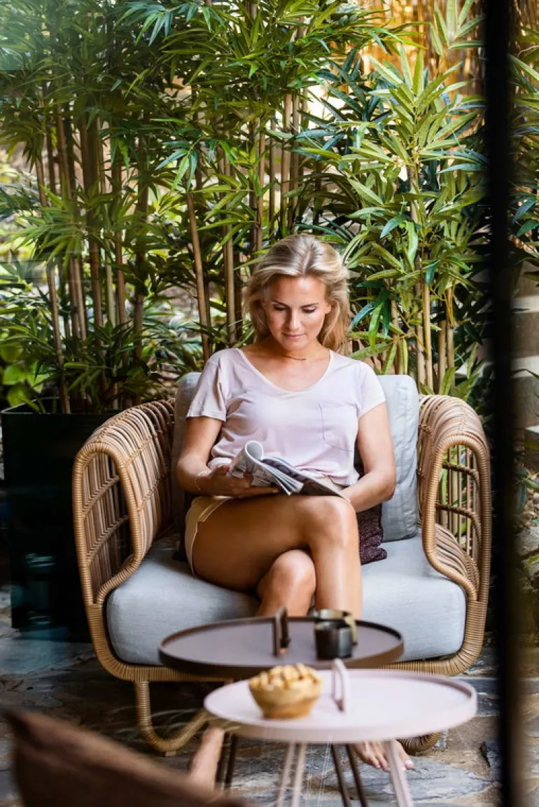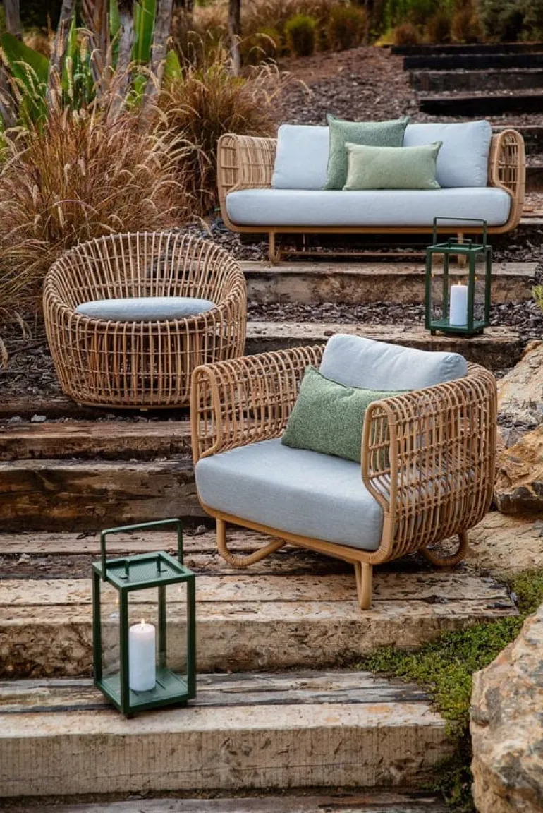 Cane-line’s Nest outdoor lounge chair is a fine example of Danish design. Designed by Foersom & Hiort-Lorenzen, the lounge chair is made of aluminum and Cane-line Weave and completed with cushions especially designed for outdoor use. Cane-line Weave is a fiber made of dyed and hard-wearing polyethylene. The material is ideal for outdoor use as it is highly weather-resistant and maintains its colors and shape for years on end. Place the lounge chair on your balcony to create a cozy yet stylish reading nook or form a gorgeous sofa set for your patio or garden by combining the Nest lounge chair with the matching Nest 2-seater sofa.