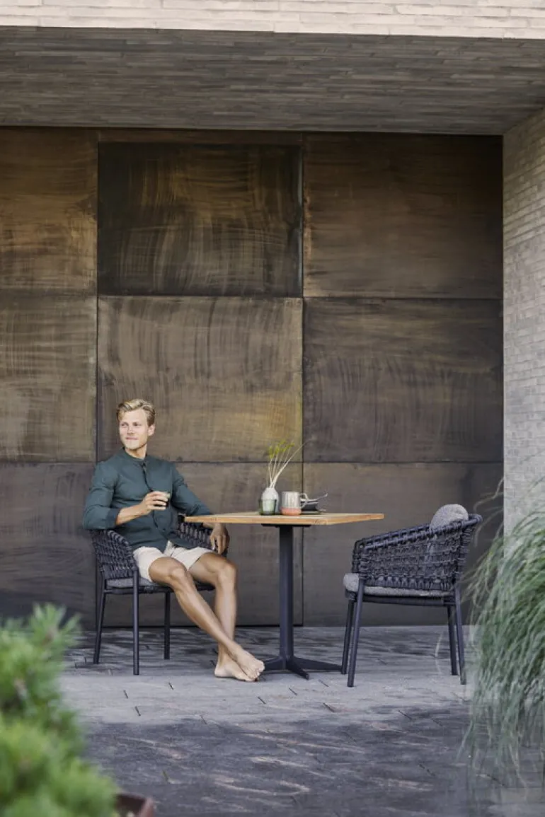 The Cane-line Ocean chair is a charming combination of modern design and traditional craftsmanship: the aluminum frame of the patio chair is decorated with a mesh-like weave, which gives the chair a light and inviting but at the same time distinctive look. What’s more, the chairs are stackable, so they are very easy to put away for the winter and dig up again in spring.