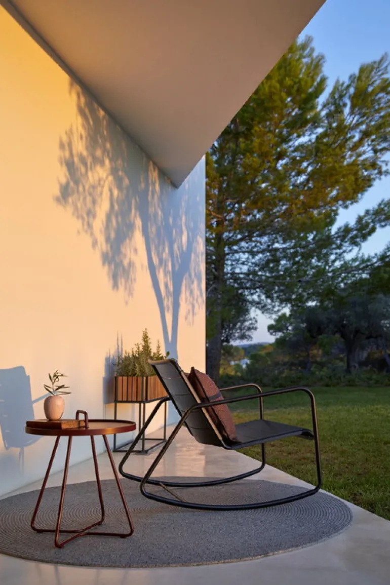 Cane-line’s On-the-move is a cheerful and multifunctional side table that is suitable for both indoor and outdoor use. Made of durable and lightweight aluminum and equipped with a handle, On-the-move is easy to move from one place to another. The detachable tabletop also functions as a tray that can be lifted off and used separately. On-the-move is a perfect side table for terraces, balconies or gardens, and it also makes a convenient, modern sofa table in the living room. The table was designed by the Danish design office Stand+Hvass.