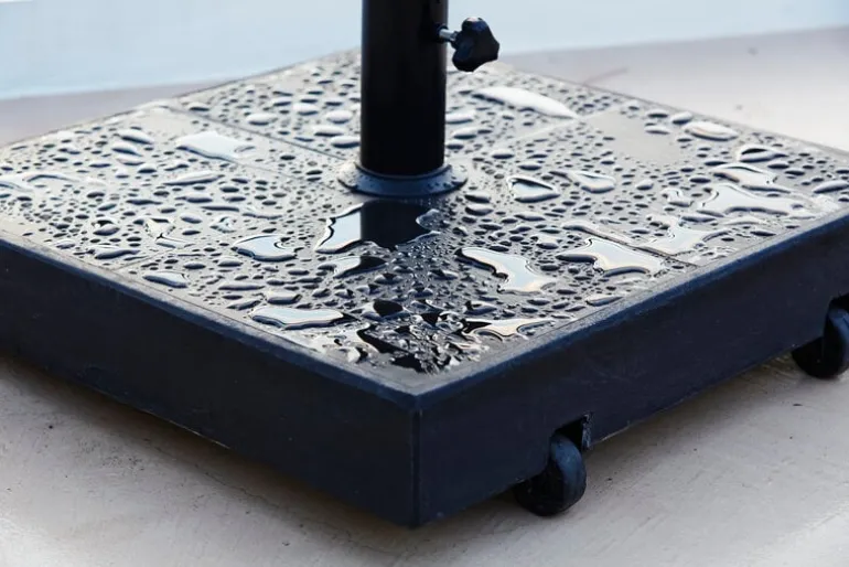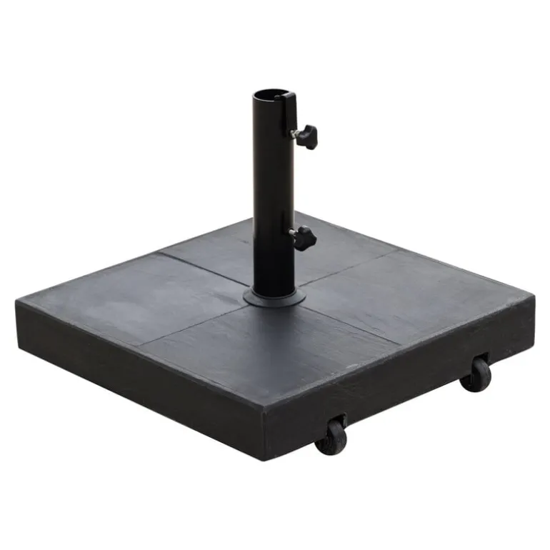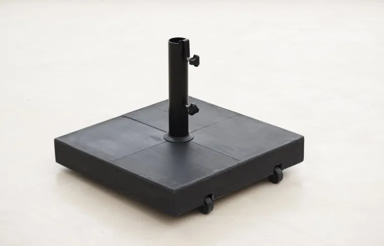 Cane-line’s parasol base is specially designed for the Sunshade parasols, but it is also compatible with other parasols with a maximum pole diameter of 2.13 x 0 in (54 x mm. mm). Made from concrete slabs, the parasol base has a weight of 47 kilograms, so it holds the parasol firmly in place even in windy weather. Despite the heavyweight structure, the parasol base is easy to move thanks to the integrated castors on the bottom.