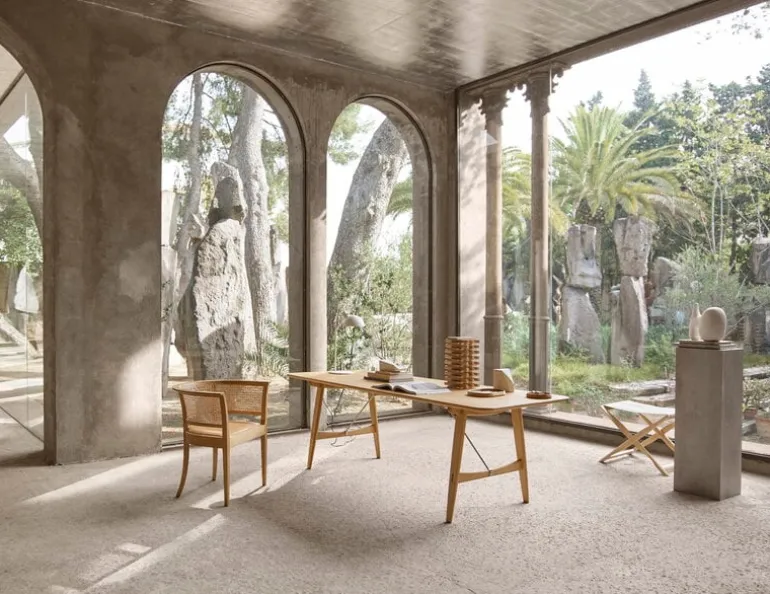 Carl Hansen & Søn’s BM1160 dining table, designed by Børge Mogensen, is also known as the Hunting table. First introduced at the Copenhagen Cabinetmakers’ Guild furniture exhibition in 1950, the table is part of a collection that draws on hunting lodges. Both rustic and refined at the same time, the dining table was put back into production in 2019.