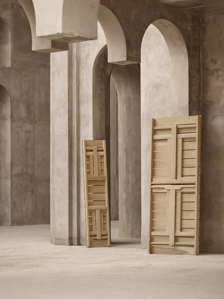 An elegant nod to the relaxed esthetics of picnic tables, the BM1871 bench was designed to accompany the BM1771 outdoor dining table. The clever bench can easily be combined with other styles as well and is a charming addition to both the garden and the terrace as such. The folding bench is also easy to store – the furniture in the collection can even be neatly hung on the wall using the wall-mounted BM527OS rack.