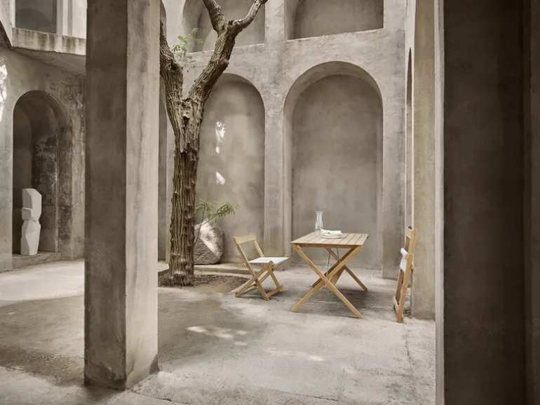An elegant nod to the laid-back esthetics of camping chairs, the BM4570 outdoor dining chair can be combined with dining tables in various styles, but it is also a delightful addition to both the garden and the terrace as such. The folding chair is also easy to store – the furniture in the collection can even be neatly hung on the wall using the wall-mounted BM527OS rack.