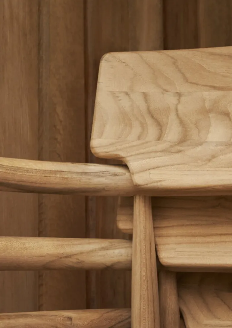 Carl Hansen & Søn’s Embrace E008 dining chair delights with its unique appearance where the natural beauty of wood with its varying grain patterns meets elegant contours. Designed by EOOS, the garden chair is made of untreated teak which is especially well-suited for outdoor use. The material is not only durable but also develops a patina over time and use, giving the Embrace outdoor chair an even more unique appearance when years go by. If you prefer an original tone, we recommend treating teak furniture with a suitable teak sealant.