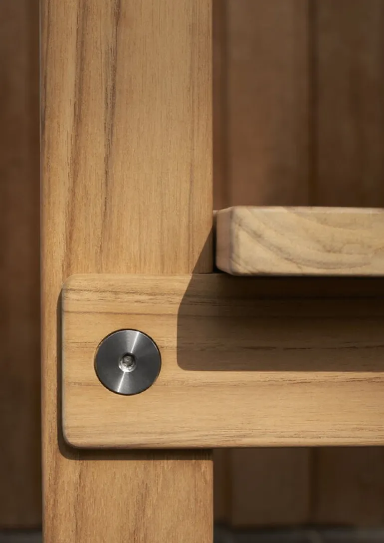 The Timbur bench is designed by Icelandic designer Gudmundur Ludvik, who draws inspiration from both nature and traditional craftsmanship. This is obvious in the look of the Timbur bench, which is brought to life by the material used: the garden bench is made of untreated teak, which patinates with time and use, making it even more unique. If you prefer an original tone, we recommend treating teak furniture with a suitable teak sealant.