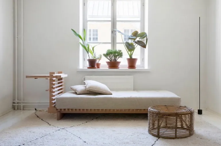 The entire Cubile 100 bed system is made ecologically in Finland, with the cabinetmakers using as much of the wood as possible to prevent materials from going to waste. Please note that the Cubile 100 bed and headboard are sold separately.