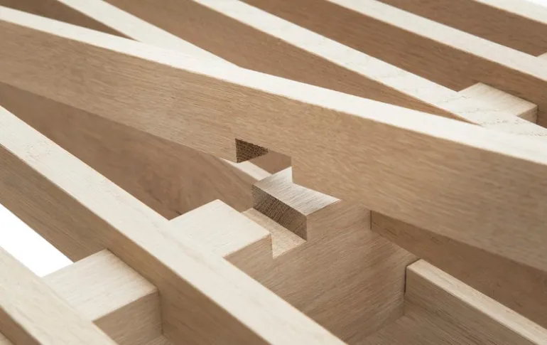 The Cubile bed can be supplemented with the Cubile 160 headboard and the Cubile 160 desk that can function either as a nightstand or a work desk and that can also be slid inside the headboard when not in use. The Cubile bed system is made ecologically in Finland, with the cabinetmakers using as much of the oak wood as possible to prevent materials from going to waste.