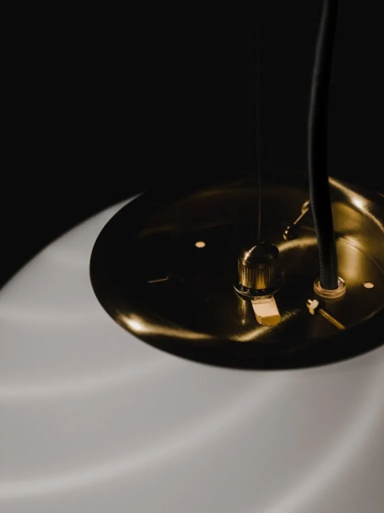 Copenhagen Venice’s S20 Vetri Murano pendant brings the beauty of Italian glass artistry and timeless sophistication into any space. The pendant’s delicate design is highlighted by a swirling pattern on the glass shade created using an original 1970s mold, casting a soft and atmospheric glow. A hand-cast brass fixture adds the perfect finishing touch to the luminaire’s refined appearance.