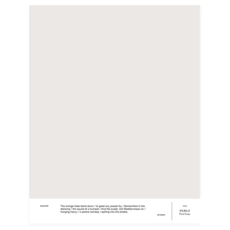 Cover Story’s interior paint in the shade 009 Pablo is a pearly greige paint whose gray hue has lovely cold rose undertones. The matte paint provides a non-reflective, velvety smooth finish on the painted surface.