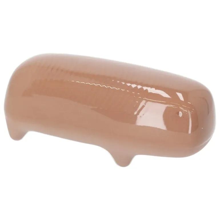 The Primordial Animals are available in various sizes in three color families: natural tones, blue-green tones and red tones. Light warm brown belongs to the latter. In each color family, the sculpture in size L features a stripe pattern on its glazed back that may vary slightly between individual sculptures. The exact positioning of the glaze itself or the creature’s eyes may also vary – each Primordial Animal is unique.
