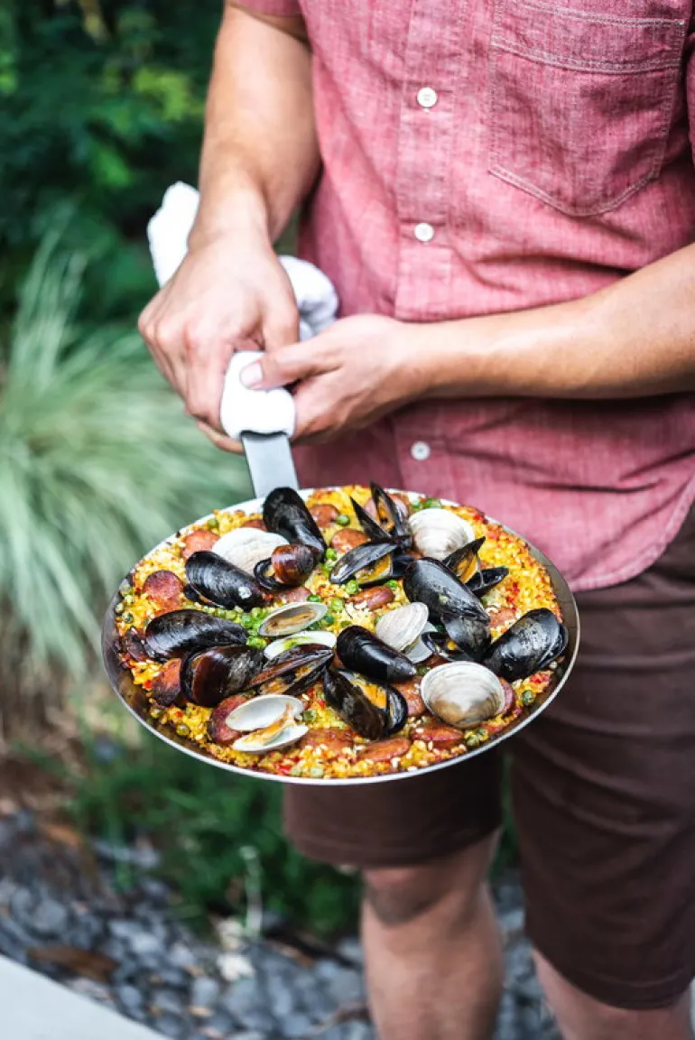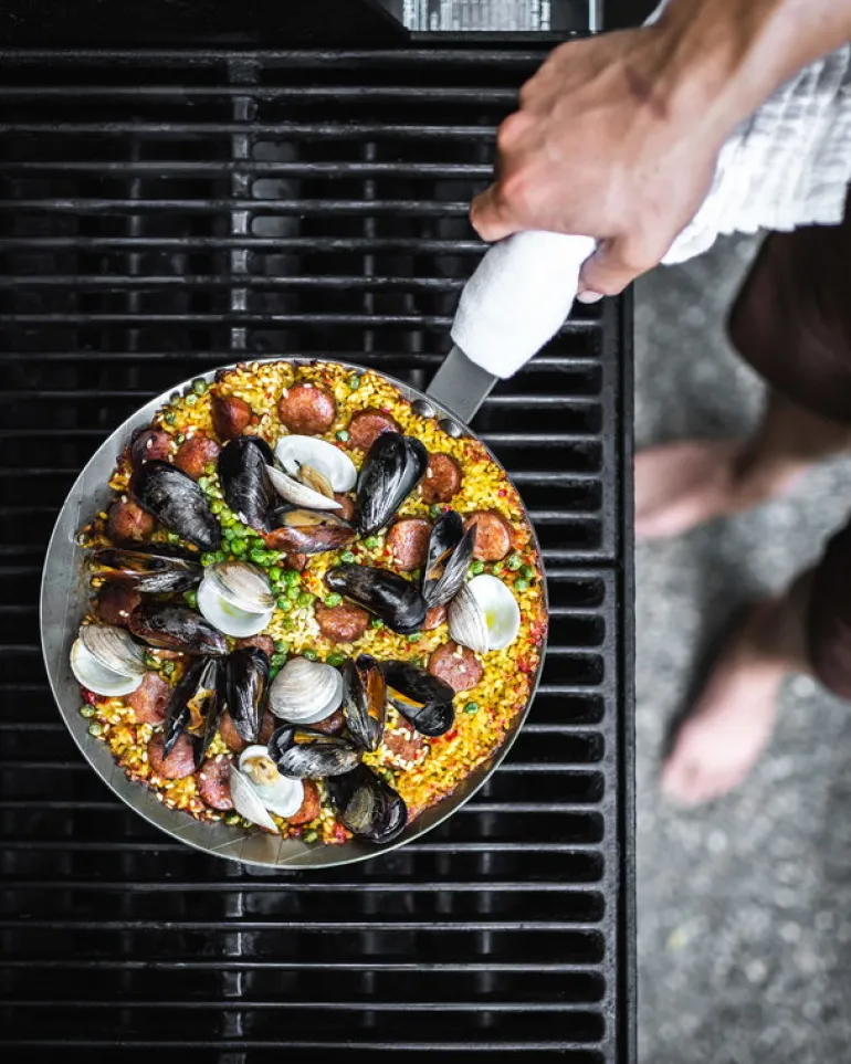 The robust and lightweight carbon steel pans can withstand high temperatures, are excellent for caramelizing food, and stay hot for long. When used regularly, the pan will turn darker and develop a natural non-stick surface – the blacker it gets, the less it sticks. You can also season the pan every now and then. Mineral B pans have been manufactured in France.