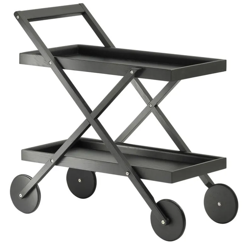 The Exit trolley by Design House Stockholm is truly a multifunctional piece of furniture whose clean-lined design makes it a great addition to any space, whether used as a storage unit in a private residence or a dish trolley in a café or restaurant. Made of black stained ash, the trolley is equipped with rubber-rimmed wheels that make it possible to move the trolley silently and without scratching the floor.