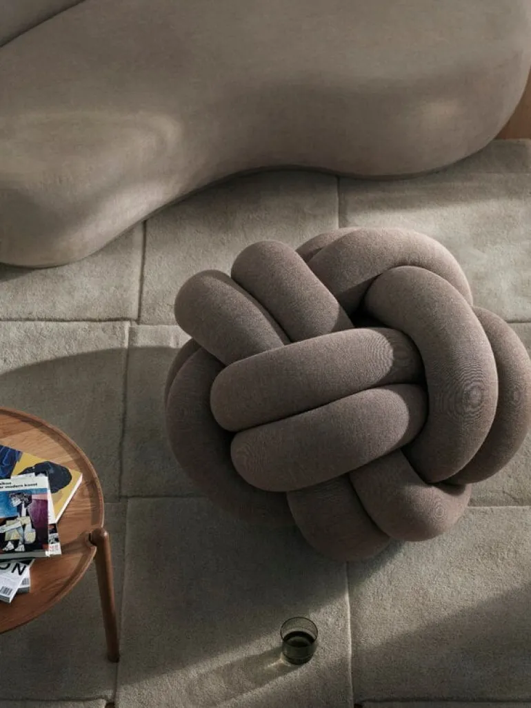 In 2011, the Icelandic designer was looking for a more efficient way to manufacture the long legs of her crocheted teddy bears and started experimenting with machine-made knits. She ended up with a collection of knot-like cushions called Notknot, and Design House Stockholm launched one of the designs under the name Knot.