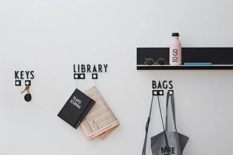 Hook2 from Design Letters is a personalized, monochrome hanger that features a single letter in the timeless font Arne Jacobsen designed in 1937 for Aarhus City Hall. The round wooden knob is perfect for bags and scarves, whereas the small metal hook behind it excels at holding towels, jackets and other textiles with a short hanging loop.