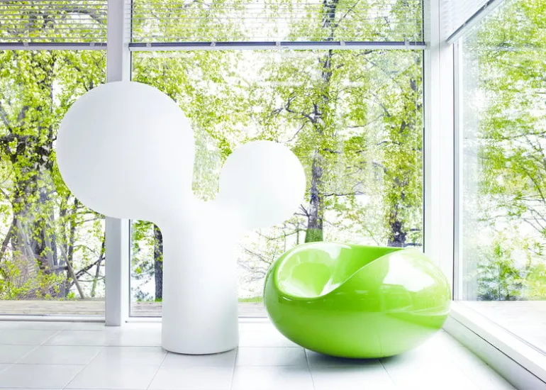 Eero Aarnio’s Pastil Chair is a joyful classic of modern design from 1967. Resembling a shiny, oversized candy, the gently rocking Pastil is amazingly comfortable – and fun – to sit on. The extraordinary play of form and color make Pastil the eye-catcher of any room. The chair is made of fiberglass and is thus suitable for outdoor use as well.