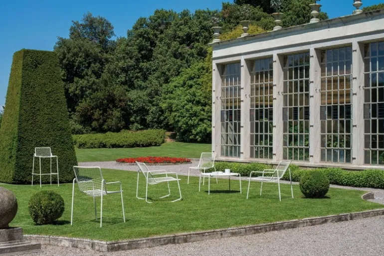 Emu’s Rio coffee table features a delightfully meticulous, geometric design. The simple yet detailed table designed by Emanuel Gargano and Anton Cristell can be combined with seats of various different styles and the versatile piece can also be used as a clever side table. Made from steel, the Rio coffee table is just as perfect both indoors and out, giving the space a fresh, modern touch.