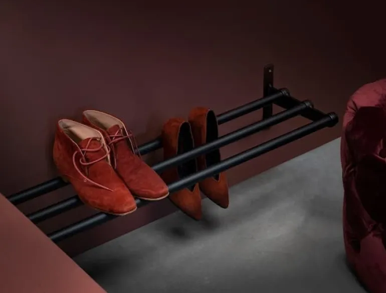 Essem Design’s Nostalgi rack is a versatile storage solution for both your hats and shoes – its purpose entirely depends on the height at which you choose to install it. Positioned closer to the ground, the Nostalgi becomes a handy shoe rack for your favorite sneakers, beloved boots, and other footwear. When mounted higher on the wall, it offers a convenient shelf for storing hats, caps, and other accessories. The storage capacity can be further improved with additional hooks that attach to the metal structure of the shelf. The package includes three separate mounting hooks.