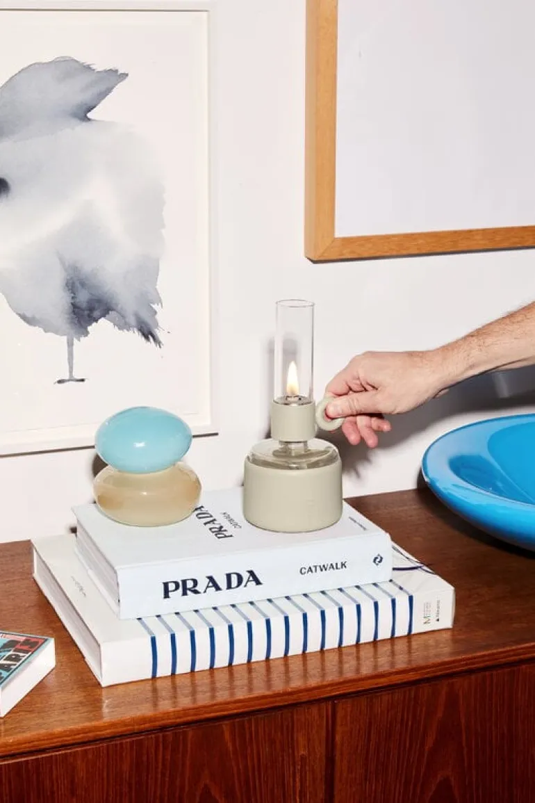 Fatboy’s Flamtastique XS is the Dutch brand’s playful interpretation of a traditional oil lamp. Made of durable borosilicate glass and aluminum, complete with a matte silicone sleeve, the oil lamp is a delightful companion all year round. In warm weather, it is even suitable for outdoor use on the balcony or terrace – as long as you remember to bring the oil lamp indoors for the night. The base of Flamtastique XS is partially transparent, so it is easy to check if you need to add more lamp oil. The round handle has a double function: it can be used to carry the lamp and turned to extend a new length of the wick.