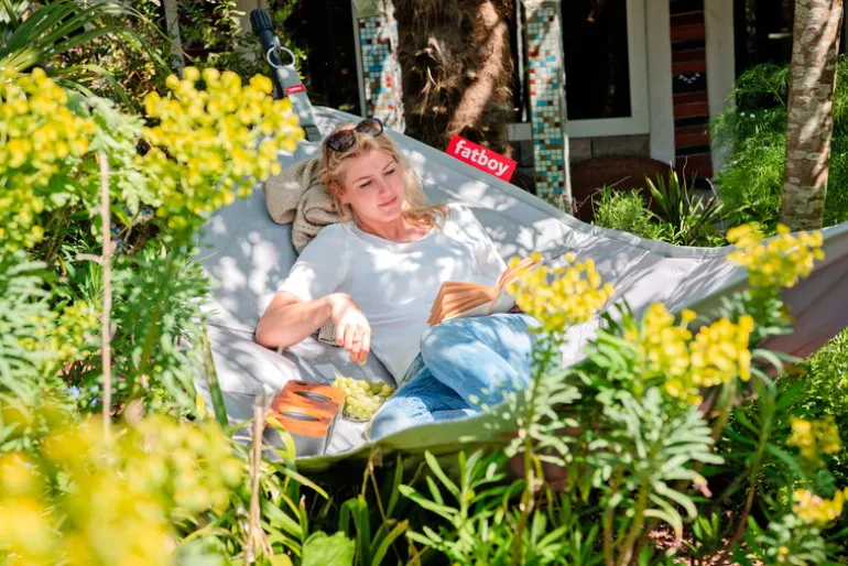 Fatboy’s Headdemock is perfect for lounging on lazy summer days. The modern hammock doesn’t need trees since it comes with a sturdy frame – feel free to place it on your favorite spot whether it is a terrace, a balcony, a garden or a beach. Headdemock is made of durable, water, dirt and UV resistant fabric that makes it well suited for outdoor use. What’s more, the hammock is available in an array of beautiful colors and it’s large enough to enjoy with a friend. When the weather is not nice enough to lounge on your Headdemock outside, we recommend to store your Headdemock indoors or protect it with the Headdemock cover, available for purchase separately.