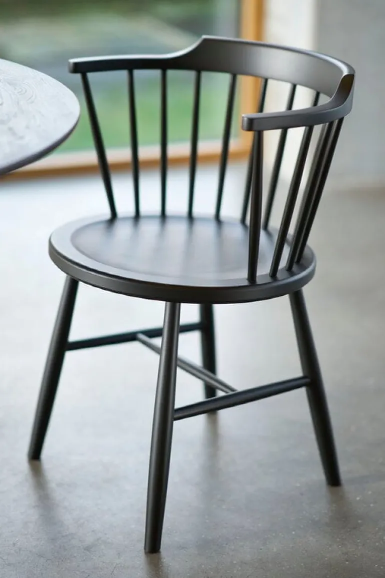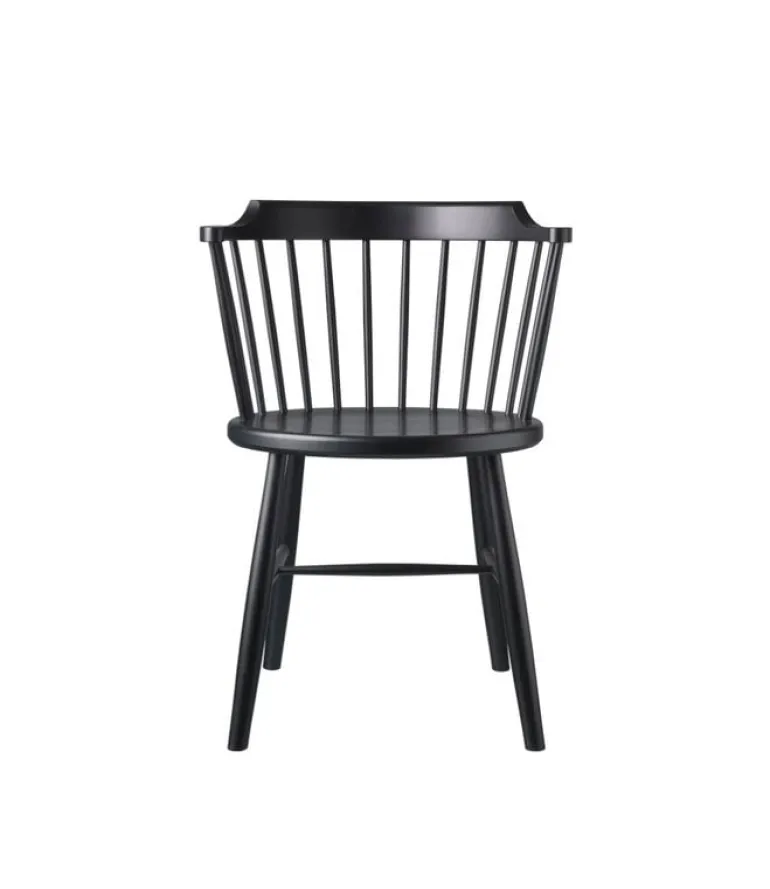 FDB Møbler’s J18 chair is Børge Mogensen’s interpretation of a classic English Windsor chair from 1945. The timeless, simplistic spindle-back chair is made of painted solid beech, and its beautifully curved backrest and slightly tilted seat make it pleasant to sit. The J18 chair is equally well suited for relaxing and working, and its sleek, upright design also serves as a dining chair.