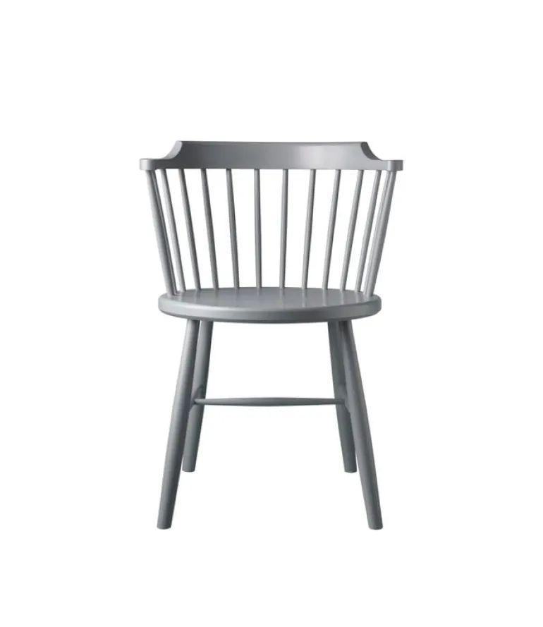 FDB Møbler’s J18 chair is Børge Mogensen’s interpretation of a classic English Windsor chair from 1945. The timeless, simplistic spindle-back chair is made of painted solid beech, and its beautifully curved backrest and slightly tilted seat make it pleasant to sit. The J18 chair is equally well suited for relaxing and working, and its sleek, upright design also serves as a dining chair.