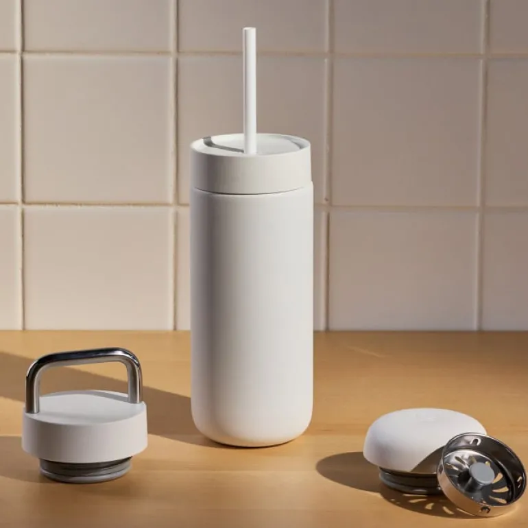 Fellow’s Carter 3-in-1 Lid System is the perfect set for carrying hot or cold beverages, whether it’s warm coffee or refreshing iced tea. The set features a high-quality Carter Move travel mug with a double-walled construction that effectively insulates heat. Its ceramic True Taste coating ensures your drink retains its pure flavor without the metallic or off-notes common in many thermoses. In addition to the Carter Move thermo mug, the set includes three lid options for different uses: