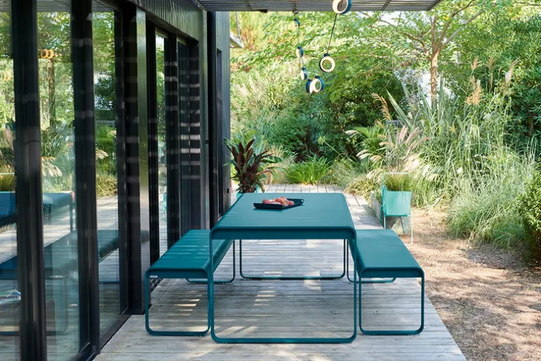 Fermob’s Bellevie dining table for eight people seats even a larger crowd, making it the ideal choice for those who like to entertain family and friends out on the patio or in the garden. The outdoor table’s look is dominated by a geometric, but softly rounded form, which makes it easy to combine with a wide range of terrace chairs. The long garden table is made of light but durable aluminum, making it very hard-wearing even at the mercy of fickle weather.