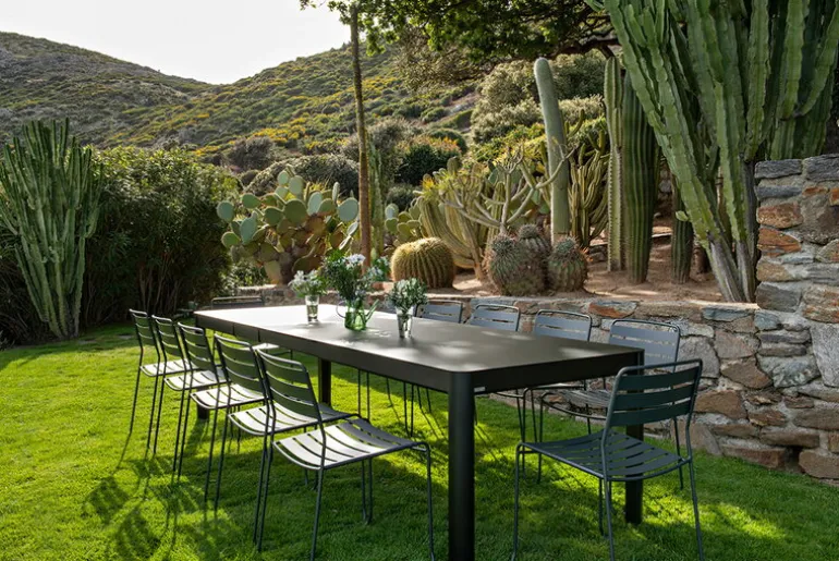 Fermob’s Ribambelle table is the perfect choice for those party organizers whose guests are always ”maybe attending”. The stylish garden table has three extensions to increase the size of the table from 1.5 meters to three meters. At the largest, the dining table can fit up to 14 guests, so there’s room for more than one or two surprise guests to drop in unexpectedly! When there are fewer diners, extra pieces are conveniently hidden in a storage compartment under the tray. Made of aluminum, the Ribambelle table is extremely stable even when extended to its maximum length and is highly resistant to varying weather conditions.
