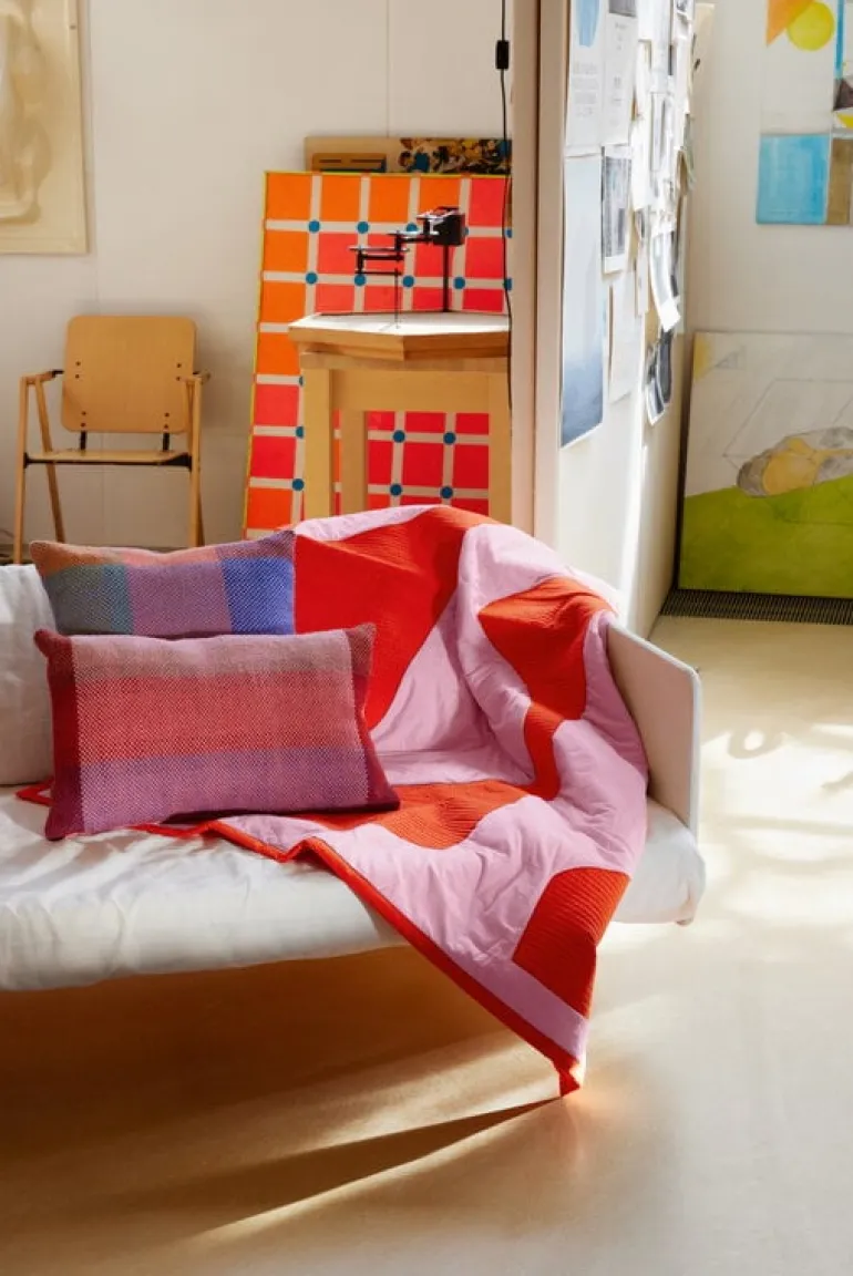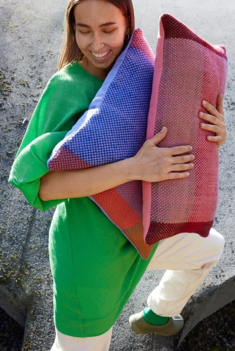 Finarte’s Palsta cushion is adorned with a captivating geometric pattern that captures the essence of idyllic summer cottages with their lush gardens and natural beauty. The front side of the decorative cushion is woven from different shaded wool yarns, interlacing each other to create a refined striped pattern. On the reverse side of Palsta cushion, you’ll find a robust cotton fabric, ensuring both durability and comfort.
