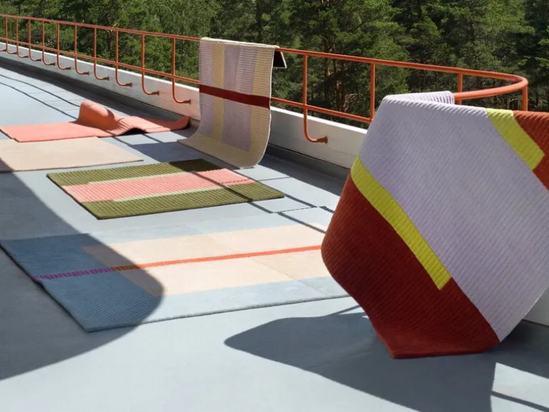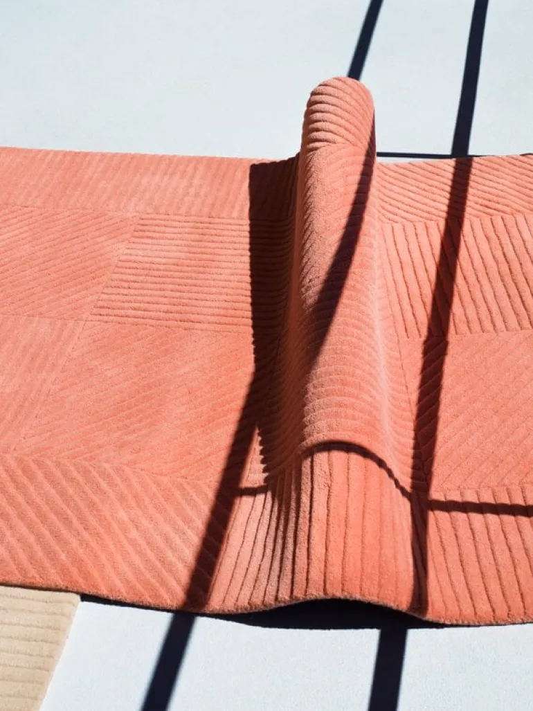 Typically for Juslin Maunula, the inspiration for the Ruusukvartsi rug’s design comes from the realms of fashion and architecture – pleated fabrics and fluted stones and tiles in particular. The color and layout are informed by the works of color theorist Josef Albers and architect Carlo Scarpa, who has also influenced the name of the rug: Ruusukvartsi is Finnish for rose quartz, a stone Scarpa often favored in his designs.