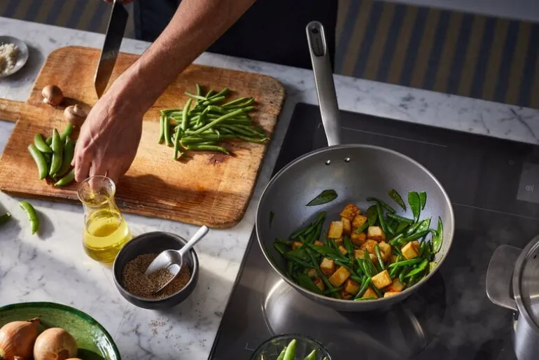 Fiskars’ All Steel wok pan is the perfect combination of practicality, durability, and everyday luxury. Made of stainless steel, the high-quality pan has a thick three-layer uncoated base and a ceramic Ceratec coating that conducts heat efficiently, guarantees excellent browning and prevents food from sticking to the pans. Like other All Steel cookware, the wok pan is dishwasher proof, ovenproof up to 270 °C and suitable for all hobs.