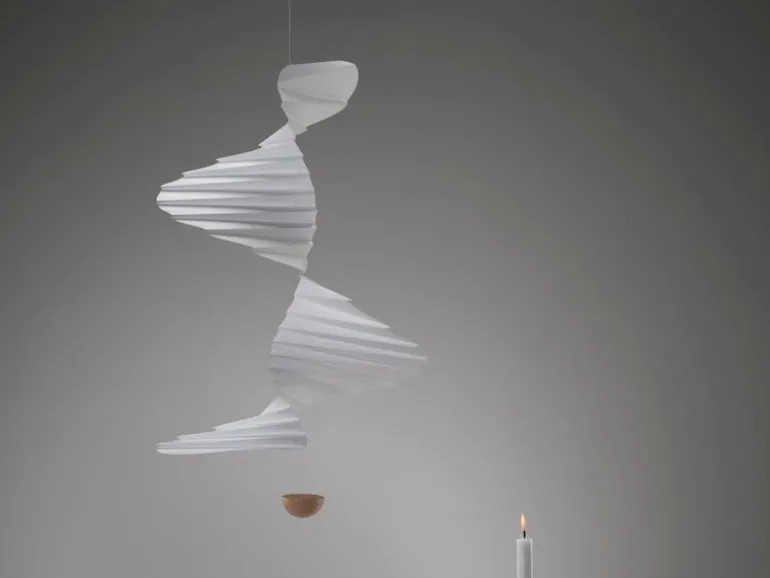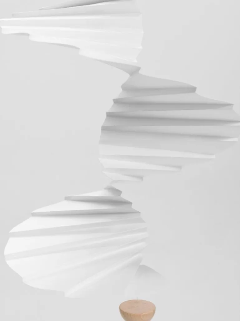 The Airflow 36 mobile by Flensted Mobiles charms with its white spiral staircase that will rotate beautifully when touched by a whiff of air. Designed by Carina Caia, the Airflow mobile has been made of thin white serigraphic foil and a wooden half-sphere hanging under it.