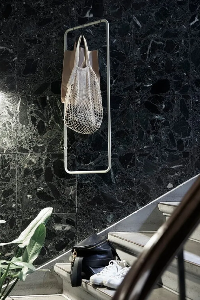 The minimalist Turnaround clothes rack by Fólk Reykjavik is an ideal choice especially for small spaces since it can be turned flat against the wall. The simple, rectangular steel pipe frame is lightweight, unbreakable and easy to install with only two screws. Place the Turnaround rack in the hallway, bathroom or behind the bedroom door or create a whole book of clothes with several racks.
