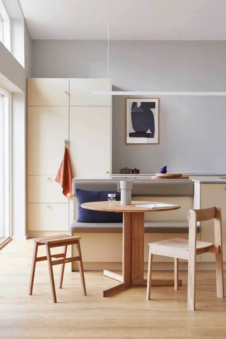 The Blueprint chair by Form & Refine is a distinctive yet timeless solid wood chair adorned with beautiful wood grain patterns. Designed by Herman Studio, the Blueprint chair has a bent plywood seat and backrest that conform to the shapes of the body. The combination of sturdy legs in the back and sleek front legs gives the chair a playful, recognizable silhouette. The Blueprint chair is stackable and, besides home use, also well suited for public environments.