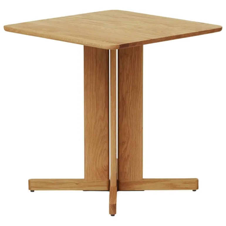 The Trefoil table, designed by Herman Studio for Form & Refine, is a solid oak dining table for home use as well as restaurants and other public spaces. The Trefoil table is constructed of a square top and a base formed by four connected legs – hence the name of the table, Quatre, which is French for four. The beautiful, recognizable silhouette is already familiar from Herman Studio’s previous creation, the Trefoil table, where the tripod base supporting the round table top is in turn made up of three connected legs.