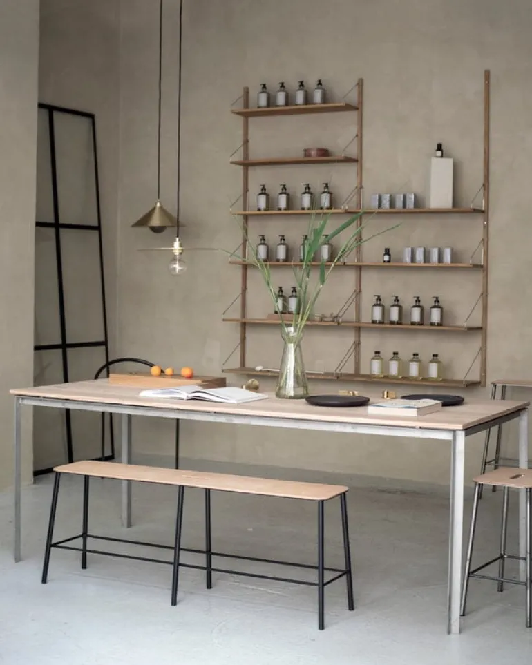 Frama’s Adam bench features a simple and functional form that was inspired by industrial design, workshops and artists’ studios. The minimalist steel base is made by a local smith in Copenhagen, and the solid oak seat has been treated with oil. The bench is easy to move around since it features a convenient handle. With its minimalist design, Adam is suitable for various uses and spaces from the kitchen to the office.
