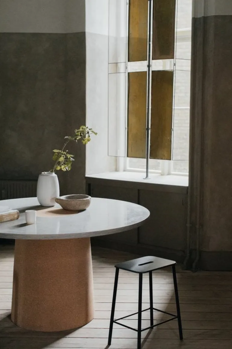 Frama’s Adam stool features a simple and functional form that was inspired by industrial design, workshops and artists’ studios. The minimalist steel base is made by a local smith in Copenhagen, and the seat has been upholstered in fine, soft leather. The stool is easy to move around since it features a convenient handle. With its minimalist design, Adam is suitable for various uses and spaces from the kitchen to the office.