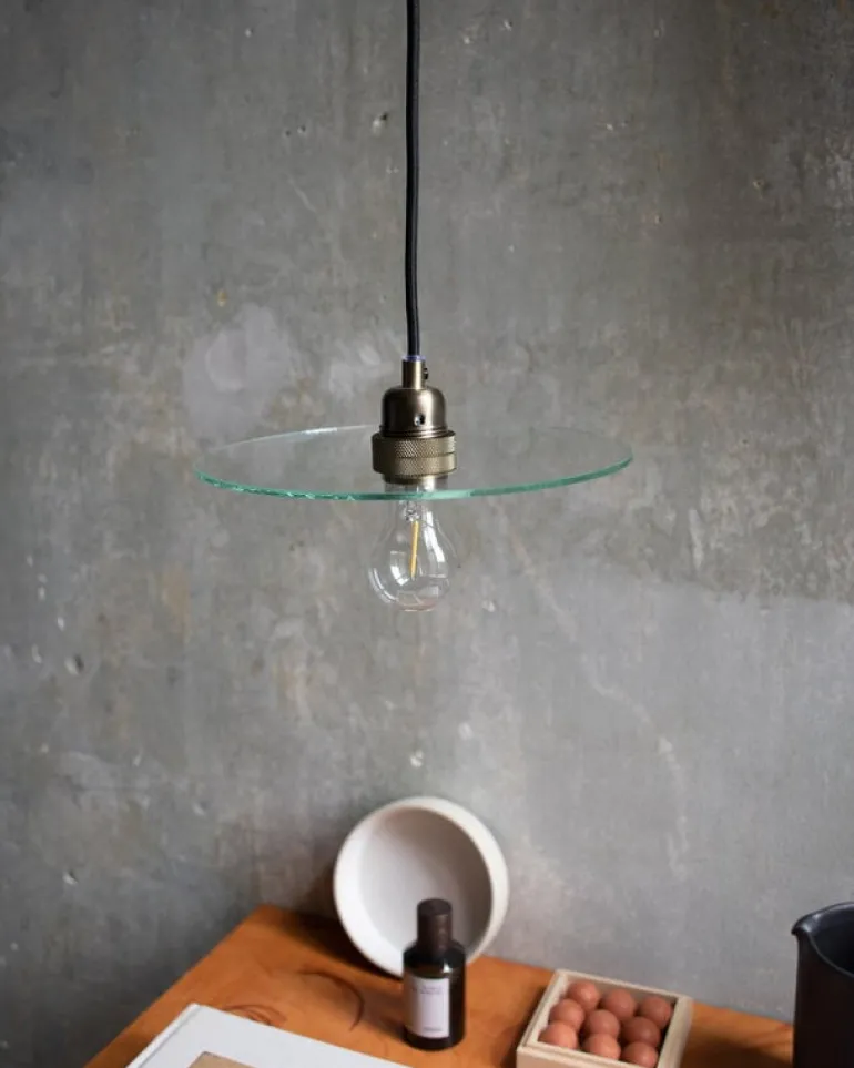 Frama’s Circle Shade pendant light is part of the Geometric Shades collection that is based entirely on simple, geometric forms. The Circle Shade pendant lamp features a brass base and an eye-catching, disc-shaped glass shade, which leaves plenty of space for the light bulb to stand out as well. You can thus modify the luminaire’s appearance and function by using bulbs of different sizes, shapes and colors. The Circle Shade lamps also look great when mounted in pairs or groups.