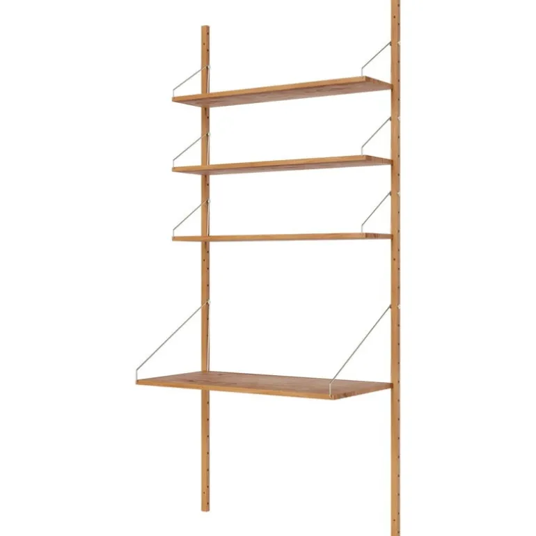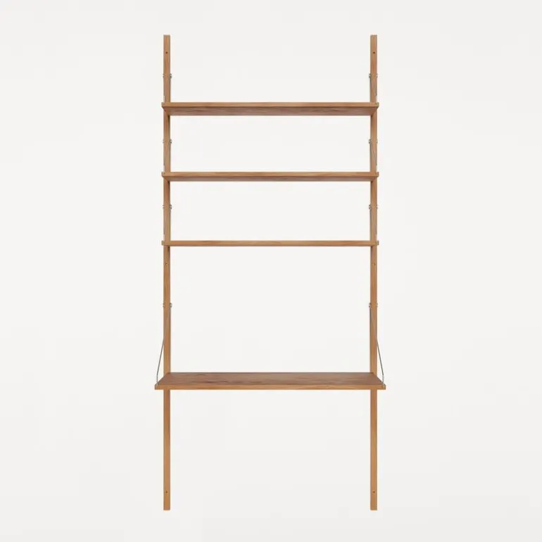 Frama’s Shelf Library wall shelf consists of solid oak shelves and a desk that are fastened to the frame with decorative steel screws and brackets. The shelves and desk can be moved around and placed on the rails however you like, and the configuration can also be customized with add-ons. Designed by Kim Richardt, the timeless, versatile and adaptable shelf is equally well suited for the kitchen, living room as well as the office.