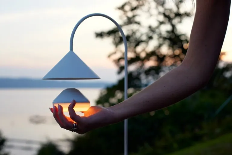 The Grasp Portable lamp features a Frandsen One light source, which attaches magnetically and charges conveniently via a USB cable. So, when the light finally dims, simply detach the light source, recharge it and let Grasp once again bring brightness and atmosphere wherever it’s needed most. The Frandsen One portable light source provides light for up to 12 hours on a single charge at its brightest intensity.