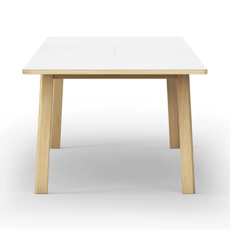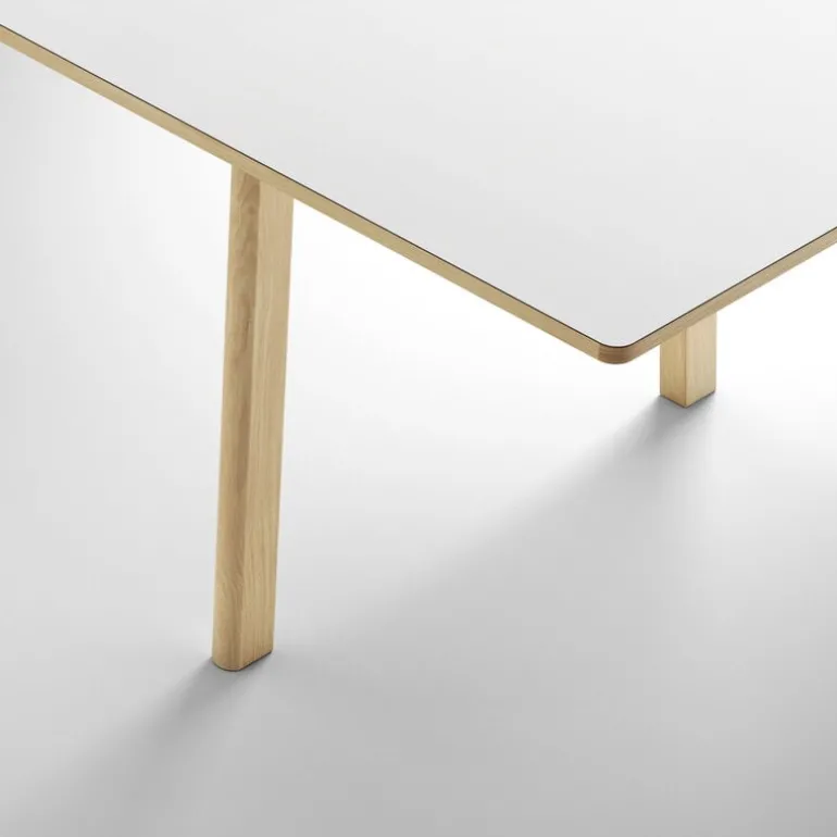 The Ana dining table is made of durable solid oak. The surface is coated with a stain and scratch-resistant nanolaminate, making it easy to keep clean and tidy even during the wildest dinner parties. The Ana table’s appearance is given a touch of quirkiness by its legs, which have a slight angle providing a pleasing contrast to the otherwise clean and sleek design language of the table.