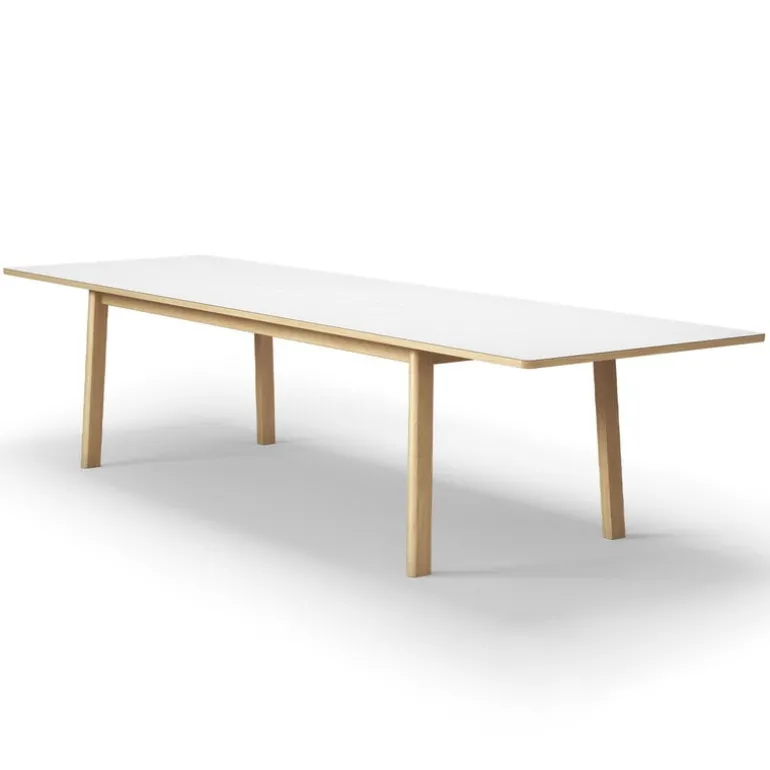 Fredericia’s Ana extension dining table is a versatile piece of Danish design by Arde Design Studio, suitable for the dining room, home office or conference room, for example. The timeless look of the dining table hides a clever secret: the table features a handy butterfly extension mechanism that allows the table to be extended to almost or over three meters – so there’s plenty of room for a surprise guest or two! When the table is in its normal size, the same mechanism provides practical storage space for various small treasures. In the kitchen, it holds cookbooks and recipe books; in the home office, important papers and magazines can be stored under the table.