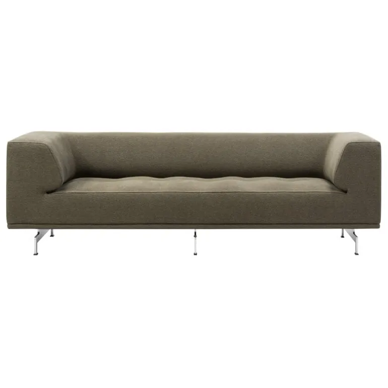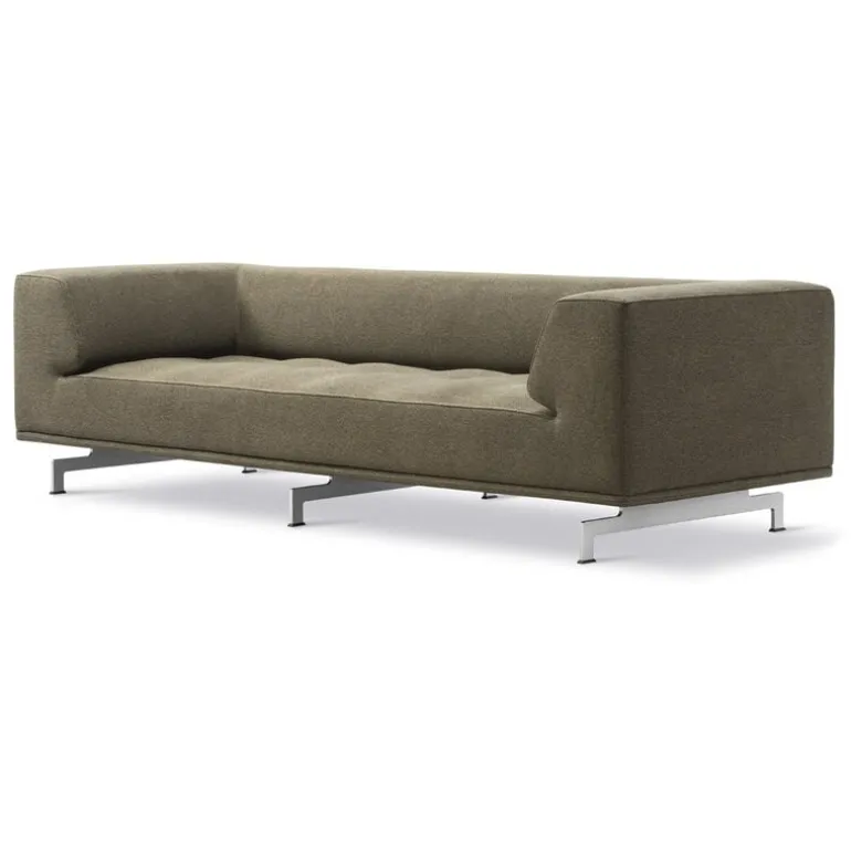 Fredericia’s Delphi sofa brings luxurious elegance and well-thought-out esthetics to a living room or lobby. The Delphi sofa features aligned, equally high armrests and backrests, resulting in an inviting, generous and perfectly supported design for sitting and lounging. The sleek metal base and small curves descending from the armrests are signature details of the otherwise simple, cushionless sofa.
